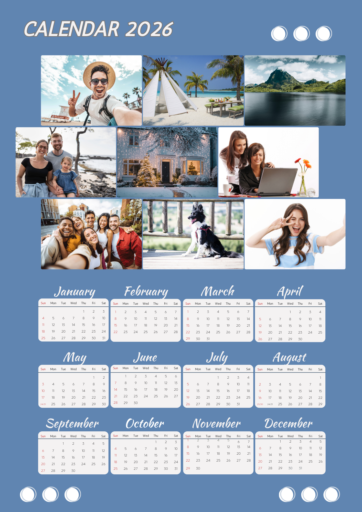 The calendar features a clean, modern layout with soft colors, balanced spacing, and a visually pleasing structure that feels calm and easy on the eyes. What truly makes this calendar special is its photo-friendly design. You can easily add your own images — family memories, travel photos, pets, lifestyle shots, or inspirational visuals — and turn a simple calendar into something personal and meaningful.