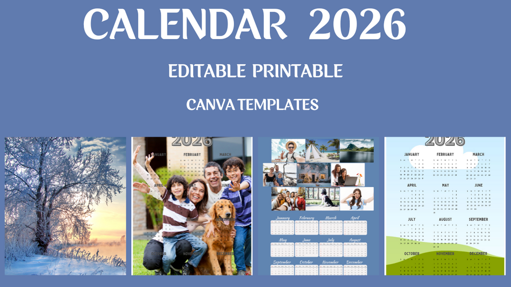 This 2026 editable calendar is designed to help you stay organized while adding a personal touch to every month. With clean layouts, soft colors, and space for photos and reminders, it’s perfect for personal use, gifting, or reselling. Fully editable in Canva and ready for print or digital use.