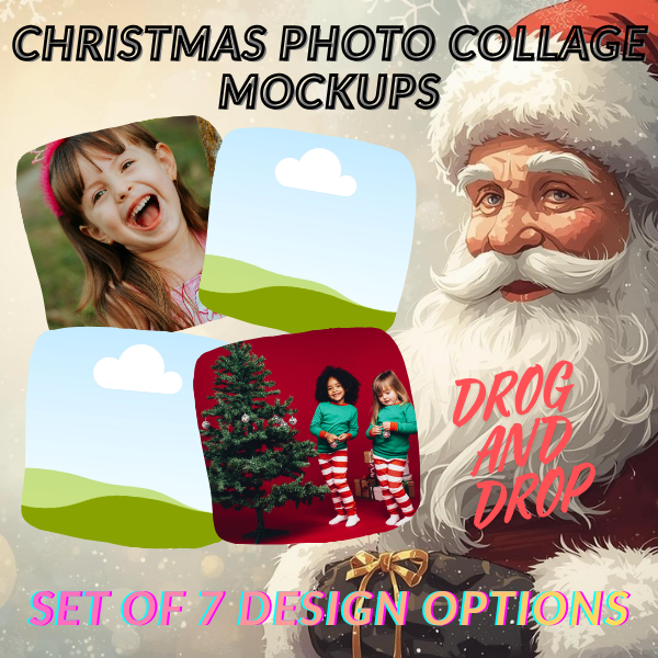 Festive Christmas Photo Collage Mockups – Canva Editable Templates