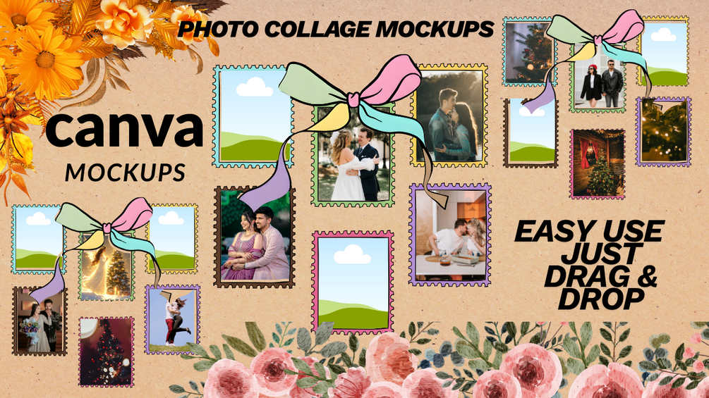 This bundle includes professionally designed, high-quality mockup templates that you can easily edit in Canva. Just drop in your photos, adjust text, and download your final design—perfect for Christmas,New Year,wedding memories,couple collages,gifts,social media posts,and client presentations.