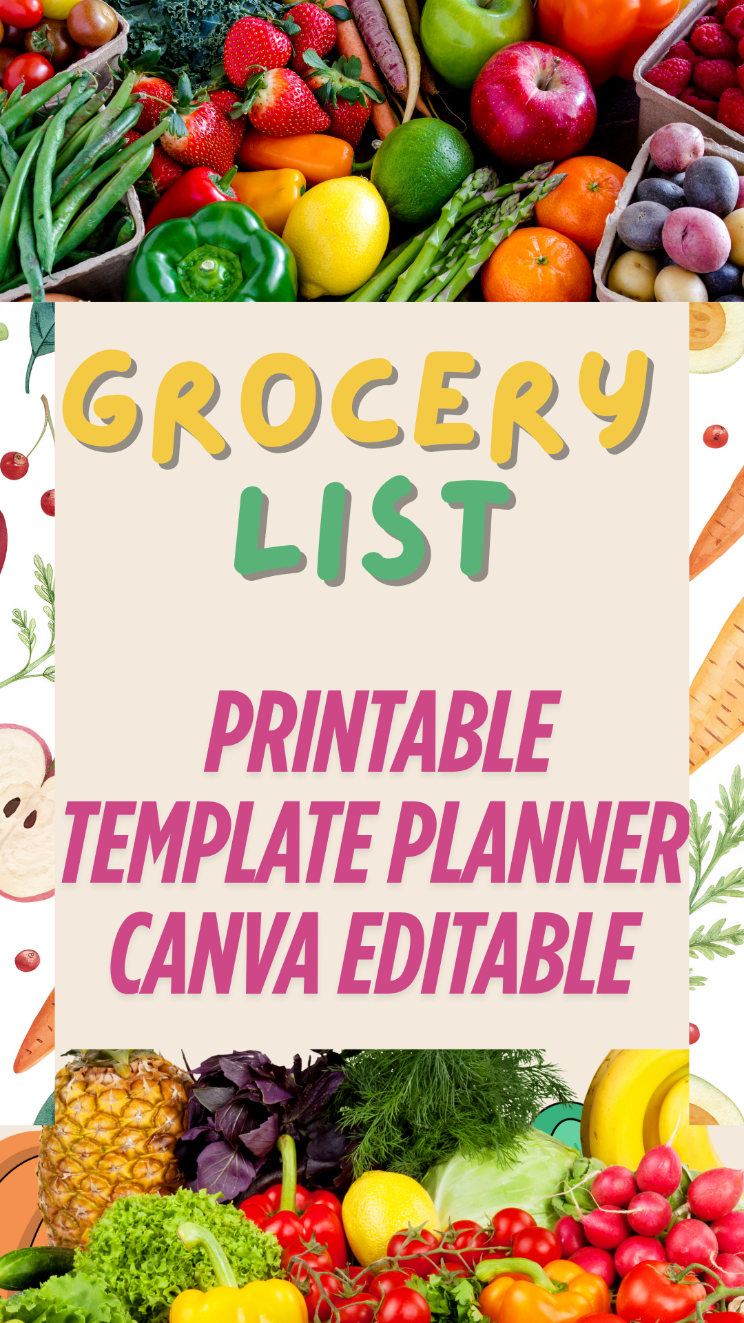 🛒 Grocery List Printable & Editable Planner Canva Template.