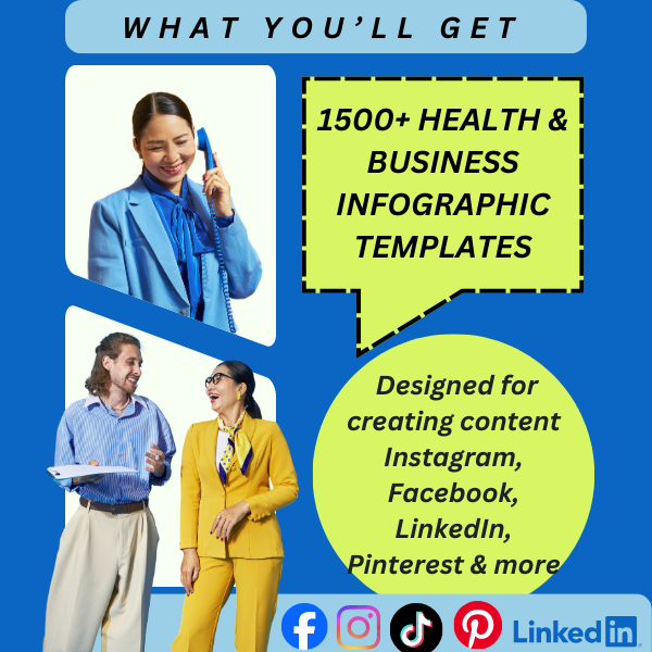 Looking for a quick and professional way to design your posts? This pack has you covered. Inside, you’ll get 1500+ ready-to-use infographic templates made for health, business, and lifestyle content. All templates are fully editable in Canva, so you can easily change colors,text,fonts,and images to match your brand – no design experience needed.