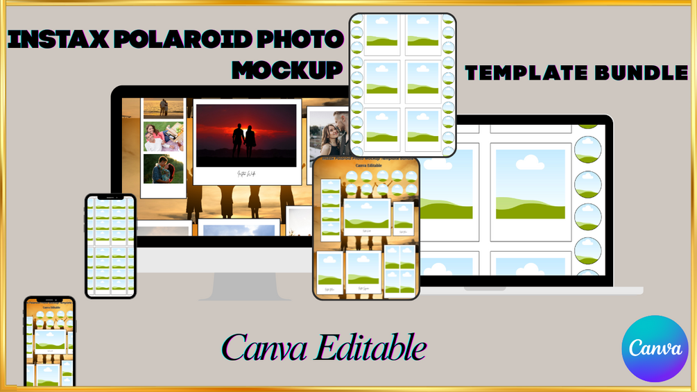 Instax Polaroid Photo Mockup Template Bundle – Canva Editable