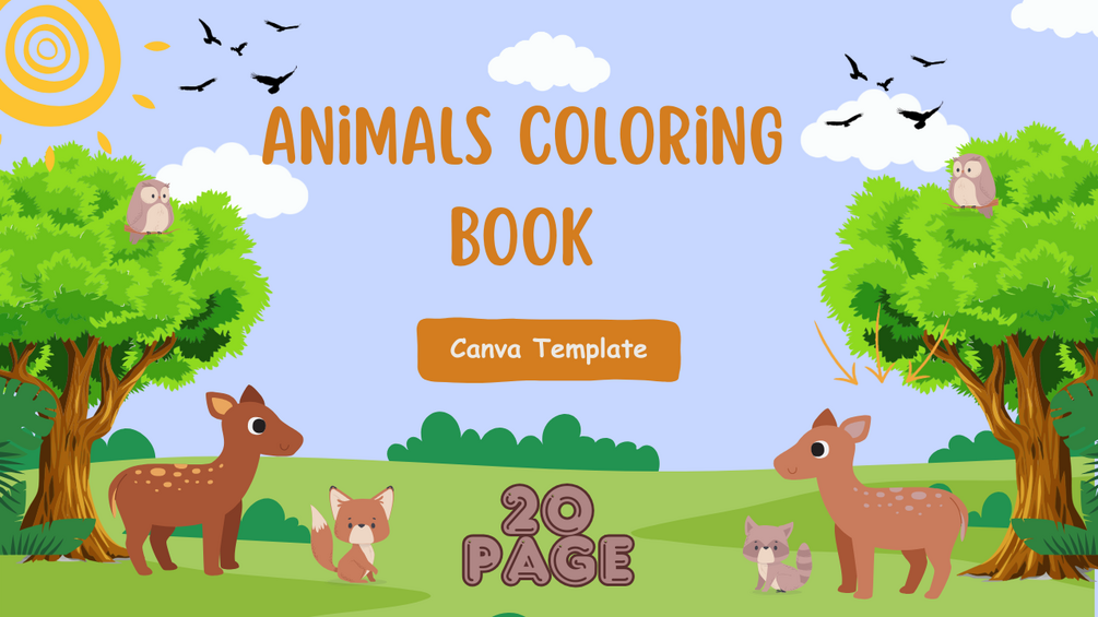 Kids Activity Animals Coloring Book–Canva Editable Template.