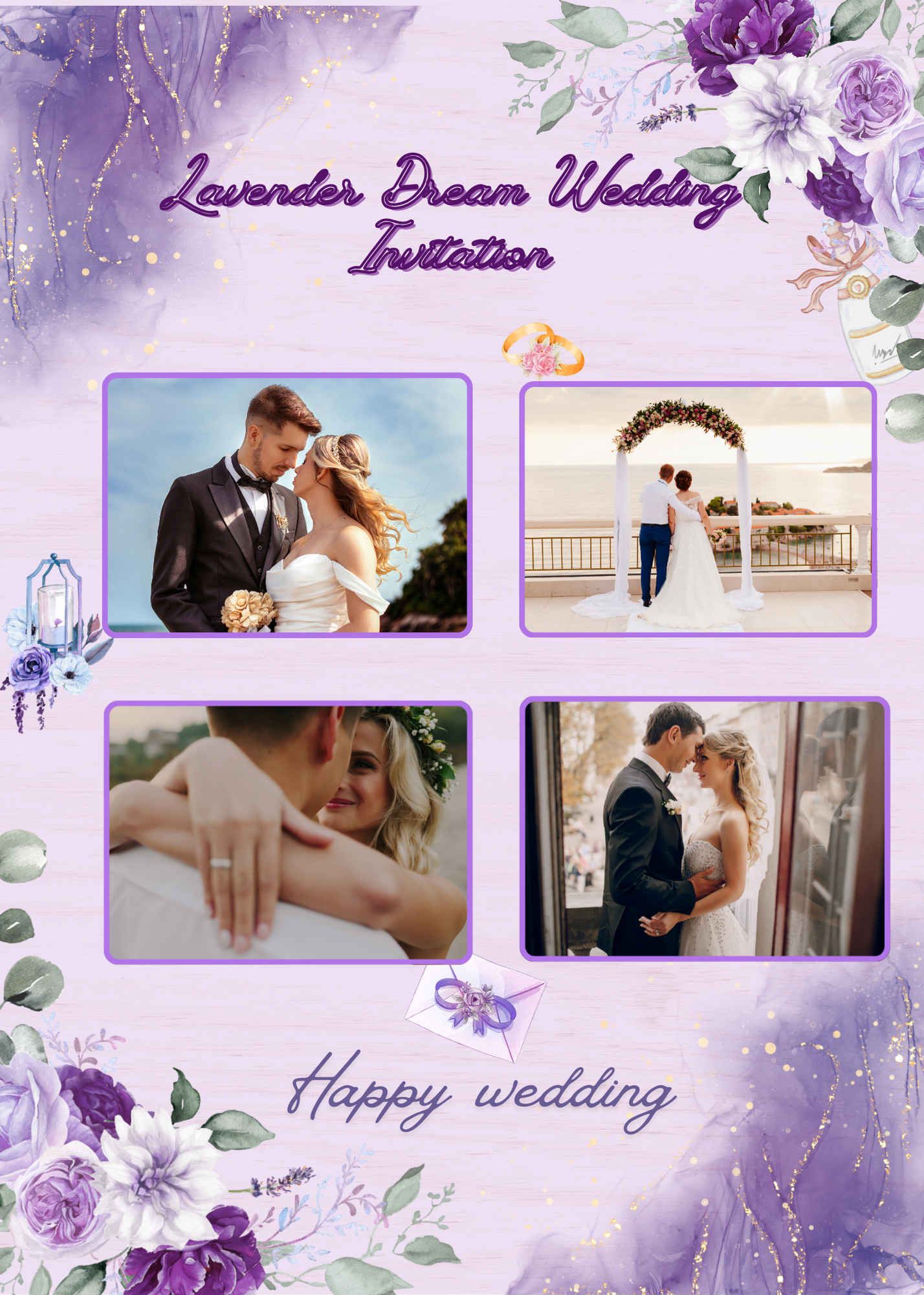 Lavender Dream Wedding Invitation Card – Canva Editable Template