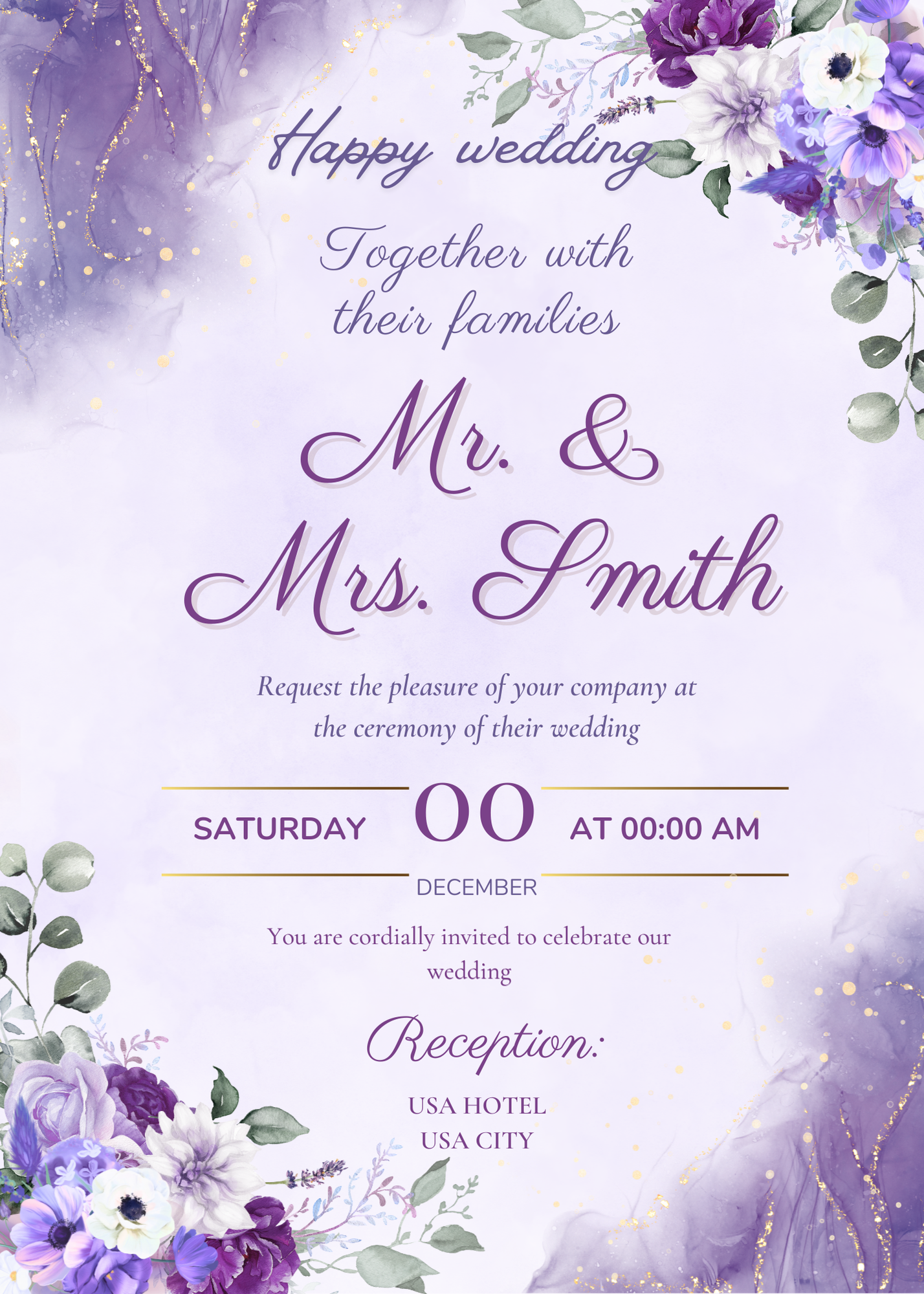 Lavender Dream Wedding Invitation–Canva Editable Template Elegant Floral Wedding Invite.